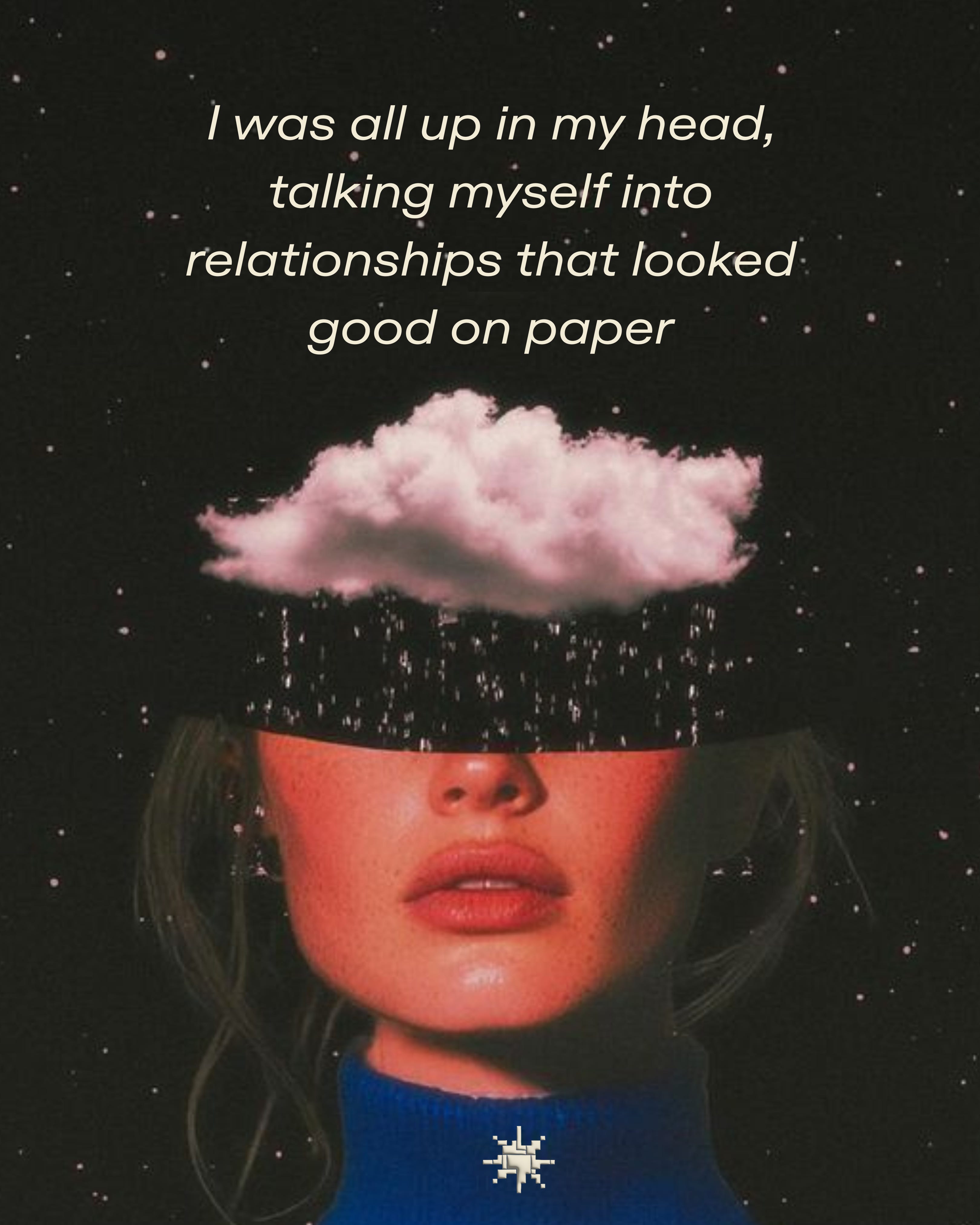 That was mostly my way of coping with feelings. Numbing out. Working out. Staying busy. Or just trying to change the channel in my mind and shove them out of the way. Lalala I’m not going to think about this. No one had taught me or modeled to me how to feel and, like most of us, I didn’t ever want to feel bad. Of course, this was a core reason I was struggling romantically. I didn’t know how to tune into and trust my feelings. I was all up in my head, talking myself into relationships that looked good on paper.