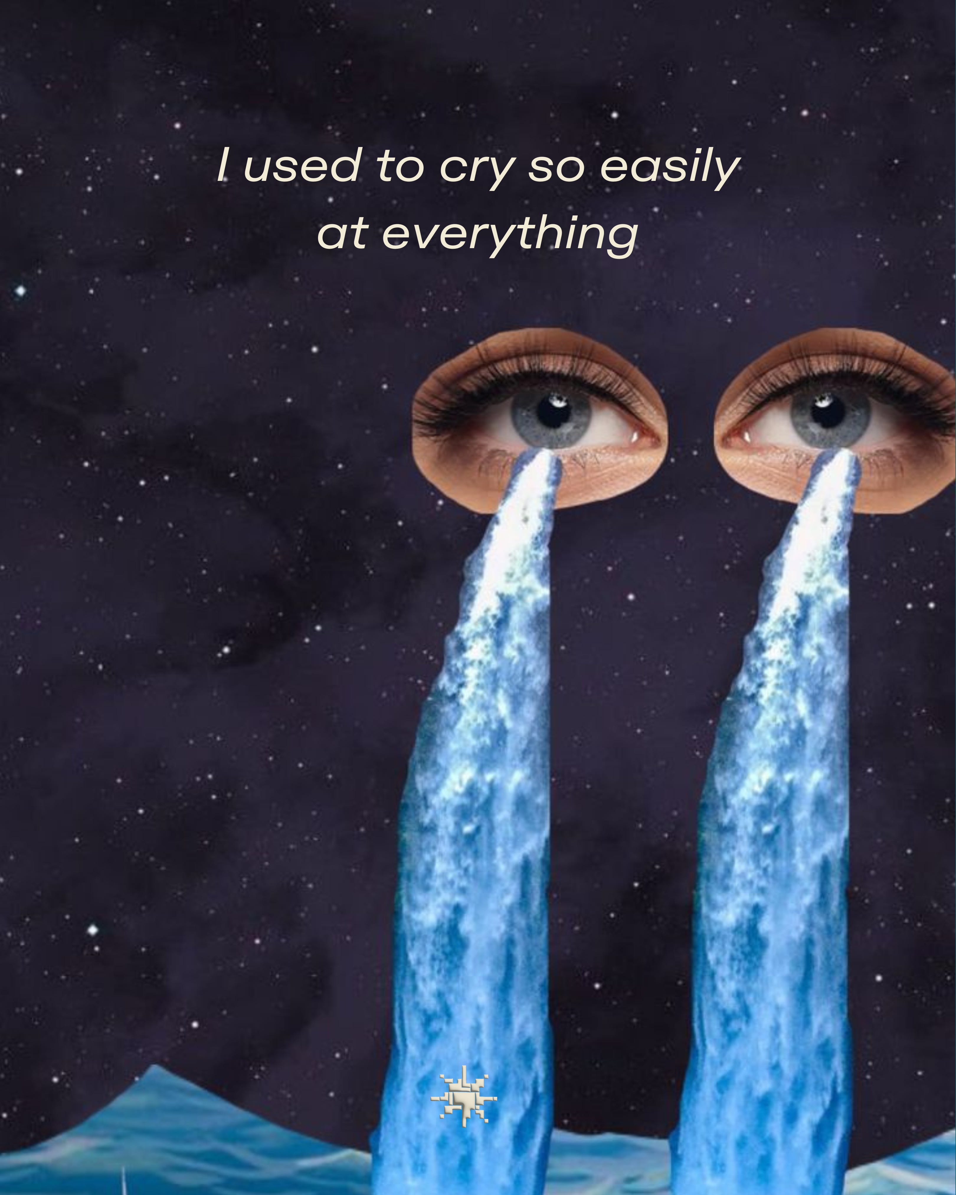 I used to cry so easily, at everything. I once cried an unreasonable amount in a glowing performance review. I couldn’t handle the emotional experience. I’d push any strong emotion down, creating a blockage over years and years, leaving very little space for new emotions. Meaning any new big feeling would be forced to come out of my body in tears.